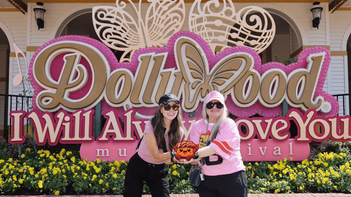 We stayed at Dollywood's HeartSong Lodge & Resort, and the moment you walk through those doors, you are engulfed in a not-so-subtle huge portrait of Dolly hanging over a fireplace, paying tribute to Dolly's seven-decade career. Alysse and I stood there for a solid minute like golden retrievers who'd just discovered a sprinkler. Mouths slightly open. Fully enchanted.